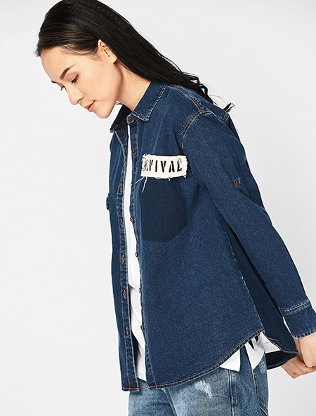 Áo sơmi nữ denim có túi ốp ngực