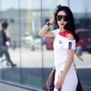 Áo sườn xám ngắn xẻ cao, hở bạo, phối ren ngực xuyên thấu