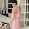 Đặc biệt, chi tiết phối ren ở cổ là điểm nhấn, tôn lên nét đẹp gợi cảm cho các chị em. Váy dáng ngắn, khoe lưng trần gợi cảm. Dây vai có thể linh hoạt thay đổi chiều dài để phù hợp với từng dáng người. Đường cắt may tinh tế, chi tiết chăm chút từng đường kim mũi chỉ, làm tăng thêm vẻ đẹp quyến rũ và sang trọng cho mẫu váy này.